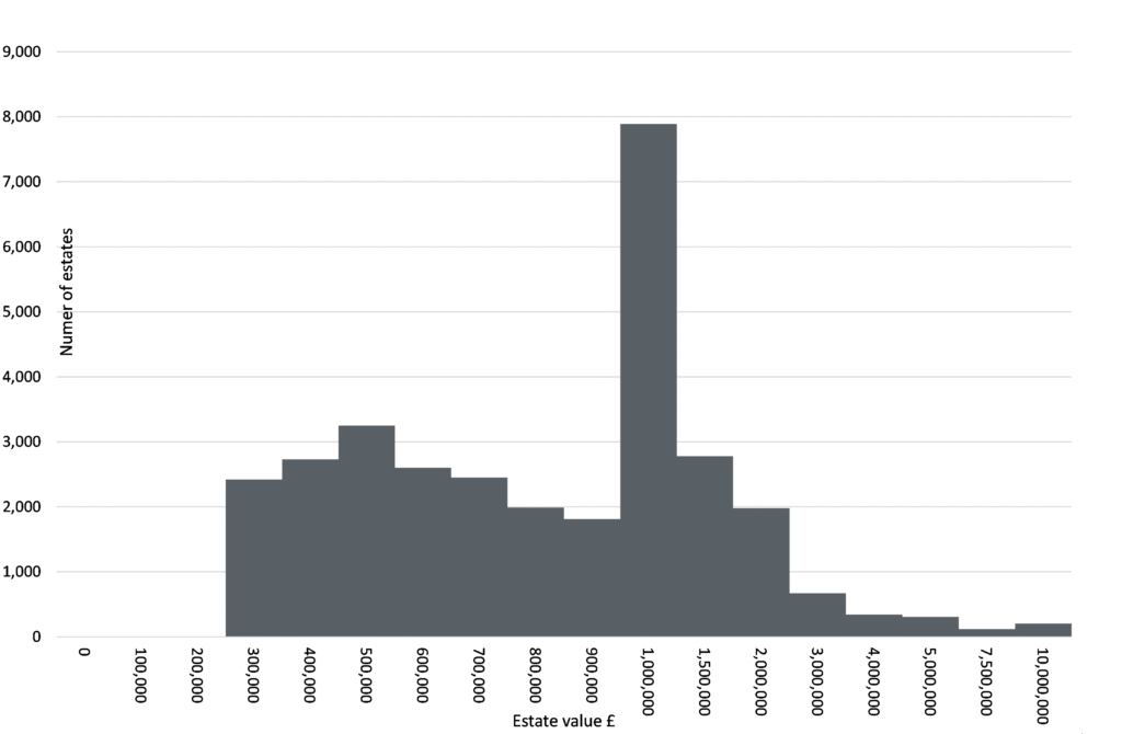 Some 7,890 estates were trapped in this category in the 22/23 tax year, around ~25% of estates paying IHT. In fact, ~95% of estates paying IHT had a value of £2m or less.